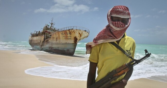 Masked Somali pirate 'Hassan' stands near a Taiwanese fishing vessel in this September 2012 file photo Farah Abdi Warsameh/AP/Press Association Images