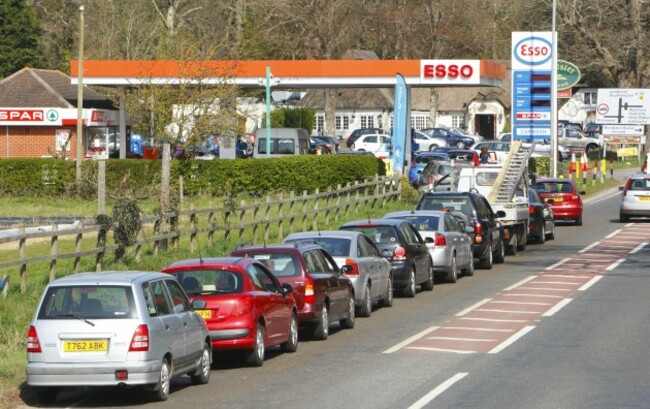 Drivers queue for petrol and diesel at a fuel station in Gateshead in England today AP Photo/Scott Heppell