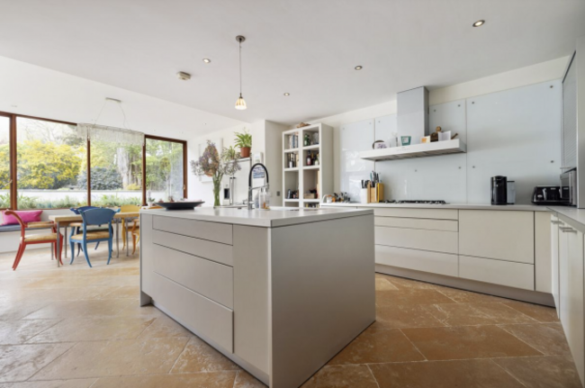 For keen cooks, the kitchen is a dream as it features a state-of-the-art Bulthaup island and units. This space flows into a sunroom that can host up to an impressive 20 guests.