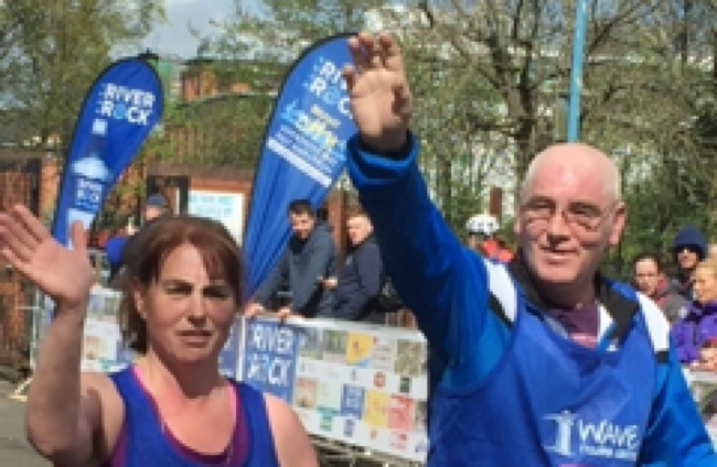 Thomas ‘Tucker' McConville with his sister Suzie taking part in the Belfast half marathon in aid of the WAVE Trauma Centre