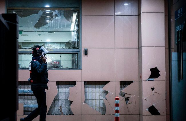 Damaged building at the Seoul Western District Court in Seoul, South Korea