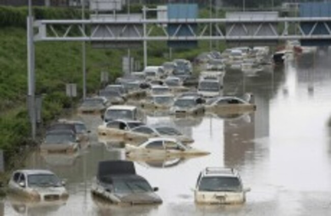 Torrential downfalls since Tuesday have affected Seoul and its surrounding areas, submerging streets filled with cars, flooding subway stations and forcing businesses to shut.