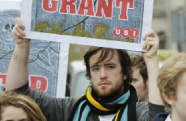 A student participates in a demonstration last year against cuts to college grants. South Tipperary County Council has abandoned plans to link grant payments to the €100 household charge. Sasko Lazarov/Photocall Ireland