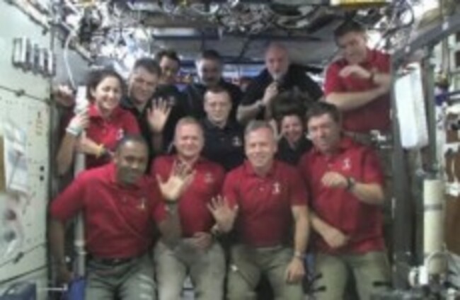 Image released by NASA, all twelve Discovery and International Space Station crew members . AP/Press Association Images