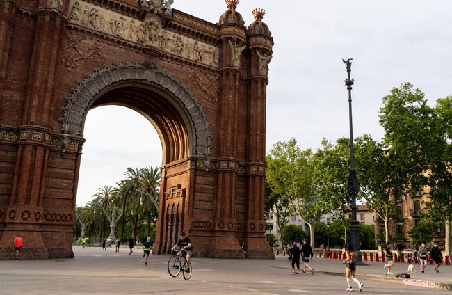 People do exercises at the Arco de Triunfo in Barcelona, Spain. Xinhua News Agency/PA Images