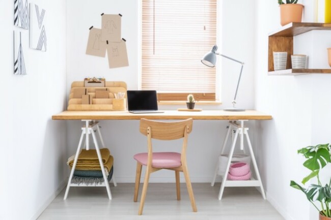 Create a sense of space in a home office by keeping furniture minimal, and raising storage off the ground Shutterstock Shutterstock