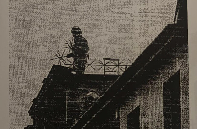 A British soldier on the roof of one of the shops in Ardoyne on 12 July 2002 State Papers/Department of Justice
