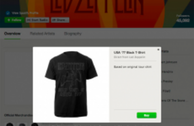 Artists are required to have a Topspin account, a site that specialises in promoting and selling goods for artists and can display up to three items at a time. Both Spotify and Topspin say it won’t take any fees or commissions from sales and can link to existing merchandise anywhere on the web.