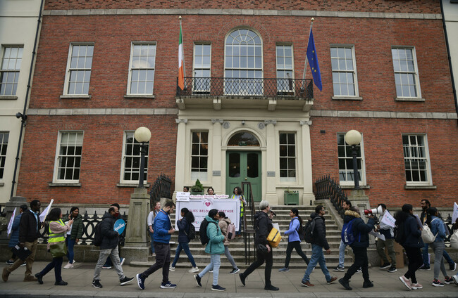 Migrants workers recruited to work in Ireland to do essential work held a mass demonstration outside the Department of Justice today to call for changes to the family reunion policy.