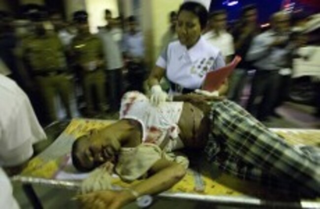 An injured Sri Lankan inmate lies on a hospital trolley following a shoot out in Colombo, Sri Lanka. Gemunu Amarasinghe/AP/Press Association Images