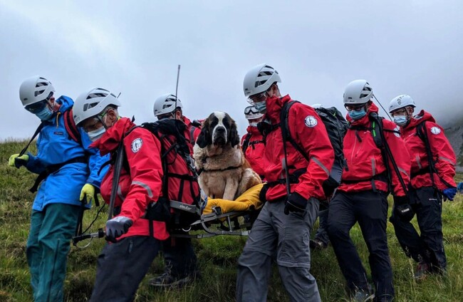 Wasdale Mountain Rescue Team were called to Scafell Pike to rescue Daisy the St Bernard – a breed originally bred to rescue people in the Alps.