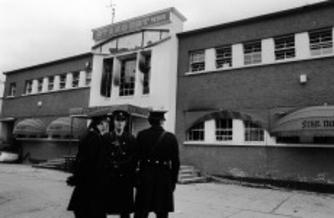 Gardai stand outside the main entrance of a fire-blackened Stardust Disco Tony Harris/PA Archive/Press Association Images