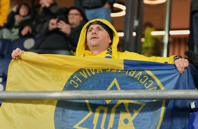 A Maccabi fan holds team's flag during the Europa League match between Tel Aviv and GNK Dinamo Zagreb earlier this month. Alamy Stock Photo