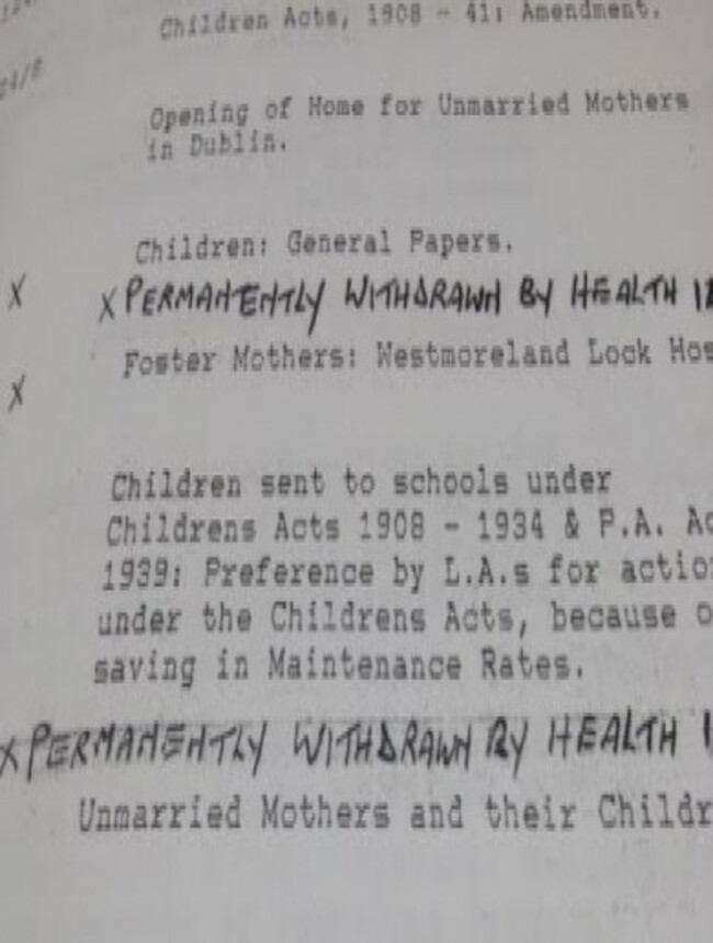 Furthermore, over 40 state files relating to unmarried mothers, such as health inspection reports on unmarried mother’s homes and other aspects of their administration, were “recalled” by the Department of Health in May 1992 and on 8 February 2006.