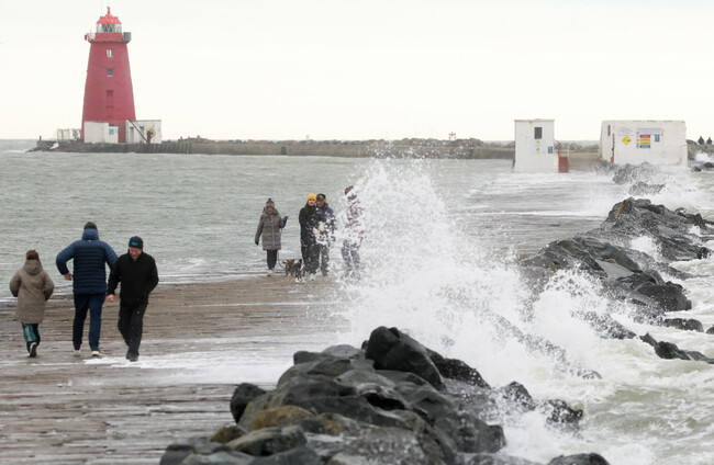 People walk near Poolbeg Lighthouse in Dublin yesterday. Leah Farrell/RollingNews.ie