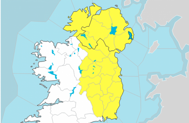 Met Éireann has issued the warning for the whole of Leinster, as well as counties Cavan, Donegal and Monaghan.