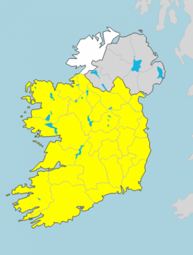 A STATUS YELLOW low temperature and ice warning has been issued for the whole country except Donegal.
