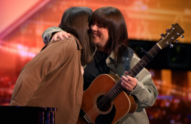 Stephanie Rainey (right) embraces her friend and piano player Sarah. Screenshot AGT