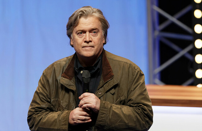 Steve Bannon delivering a speech during the French far-right National Front party's annual congress on 10 March Sylvain Lefevre/Getty Images