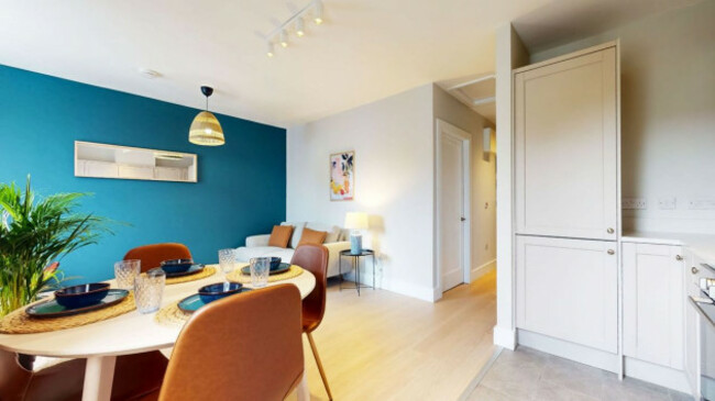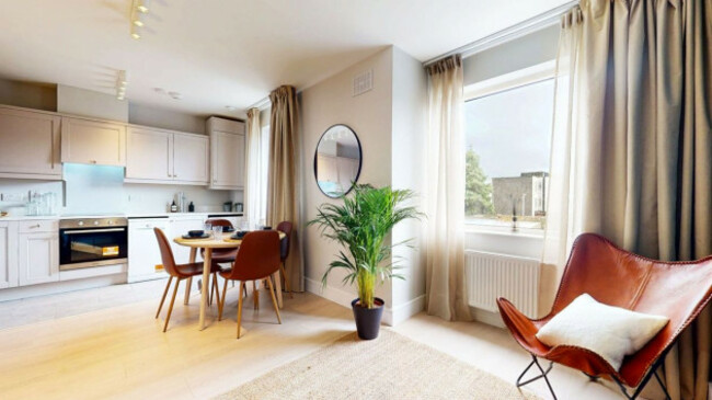 Features include quality flooring throughout, a contemporary fitted kitchen with integrated appliances, stylish bathroom tiling, a private balcony, energy-efficient double-glazed windows and gas-fired central heating with a combi boiler. Ideally located within excellent primary and secondary school catchments, serviced by convenient bus routes and with easy access to the M50 and N11, this home is perfectly positioned for city commuting. There’s also the option to buy it fully furnished.