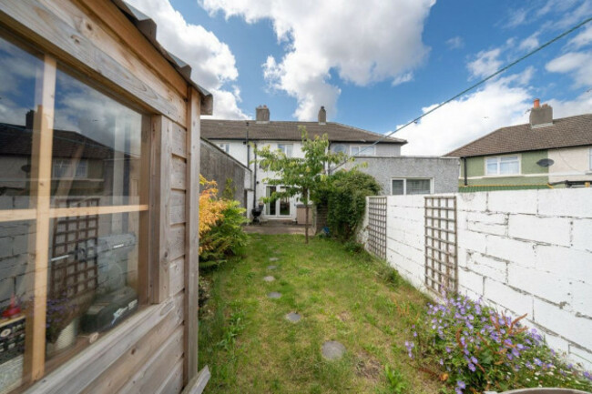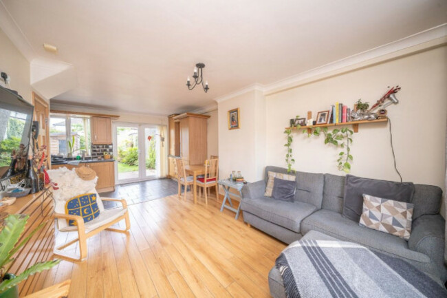 This mid terrace home, built in 1950, combines classic charm with modern living. A cobblelock driveway leads to an attractive facade with canopy. Inside, laminate floors flow through a dual aspect, open plan living, dining and kitchen area, complete with ornate coving, understairs storage and a stylish, fully tiled kitchen with ample cupboards and counter space. Double doors open to a sunny south-east facing garden and patio, featuring a storage shed with electricity that’s perfect for entertaining or relaxing.