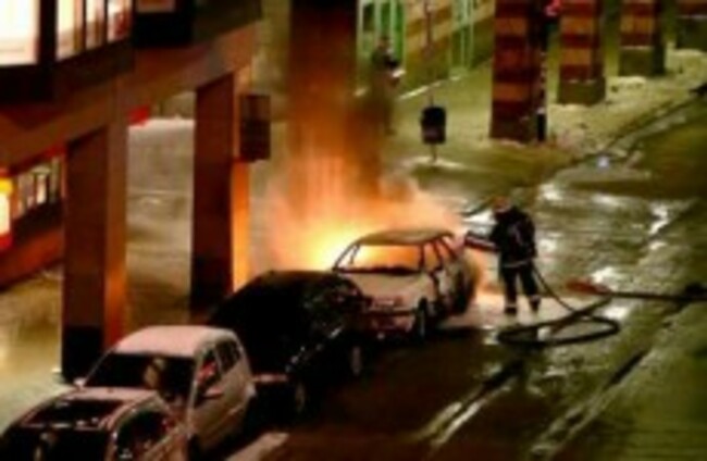 Police hose down a car that exploded in a busy shopping street in Stockholm yesterday, in what authorities believed was a failed Islamic terrorist attack. AP