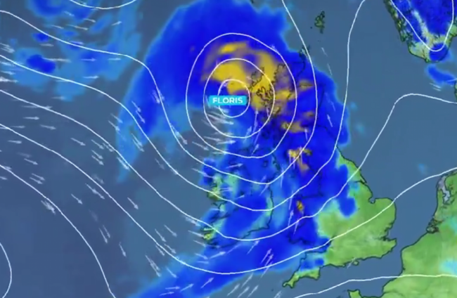 Storm Floris is set to bring wet and windy weather from Sunday night into Monday Met Office on X