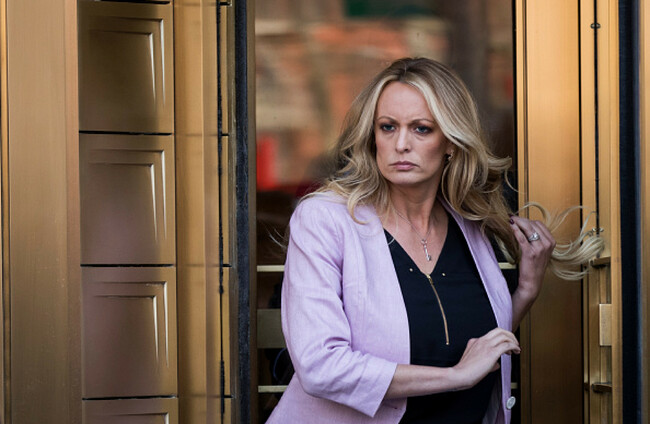 Stormy Daniels exits the United States District Court of New York for a hearing related to Michael Cohen, President Trump's longtime personal attorney and confidante. Drew Angerer via Getty