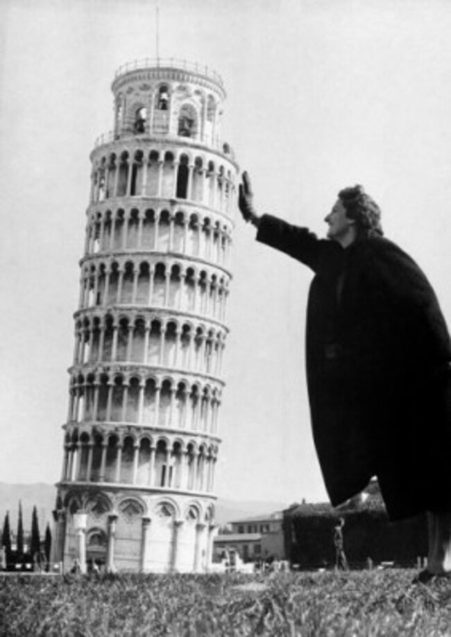 It still leans – but perhaps not as much as it did in this tourist snap from 1954: