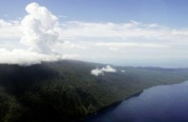 Steam rises from a volcano on the island of Ambae, part of the Vanuatu nation, in 2005. The islands, hit by an earthquake today, sit on the Pacific's Ring of Fire. AP Photo/Rick Rycroft