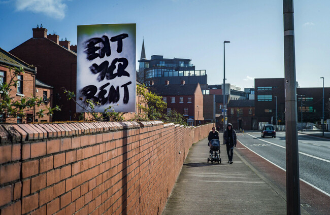 A sign reading "Eat yer rent" on Dublin's Cork Street. Alamy Stock Photo