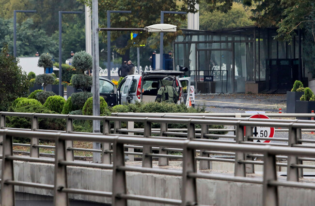 Two police officers were slightly injured during the attack near an entrance to the Ministry of Interior Affairs, minister Ali Yerlikaya said on X, the social media platform formerly known as Twitter.