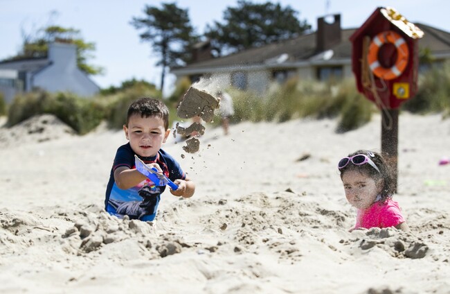 Tyler Byrne (3) and Mollie Murphy (3) from Dublin digging a hole on Burrow Beach in Sutton earlier this week. Sam Boal/Rollingnews.ie