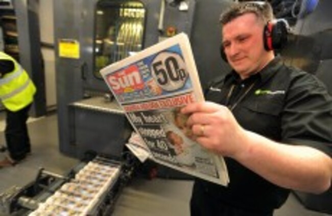 A printer reads one of the first copies of the Sun on Sunday hot off the press last night. John Stillwell/PA Wire/Press Association Images