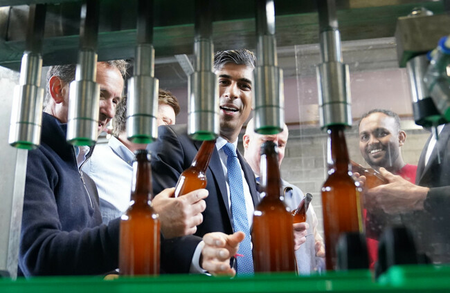 Rishi Sunak at the brewery today. Stefan Rousseau/PA