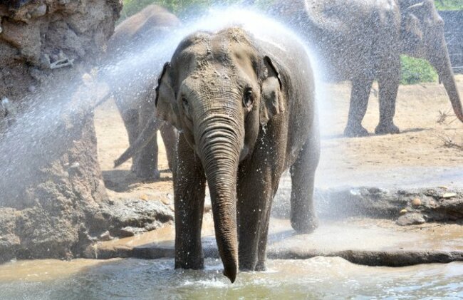 Elephants at Dublin Zoo get hosed down today to keep cool in the hot weather. Photo: Laura Hutton/Photocall Ireland