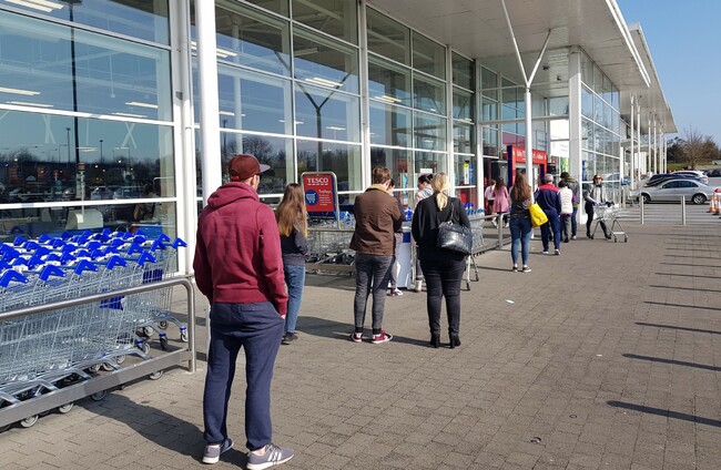 Customers queuing outside Tesco Ardkeen in Waterford City in March. RollingNews.ie