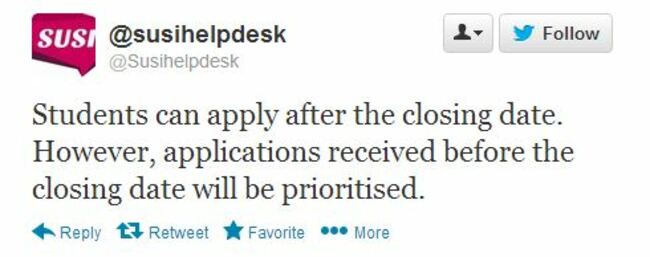 SUSI said today that they are still accepting applications and that delays in processing seen last year are not expected to be repeated.