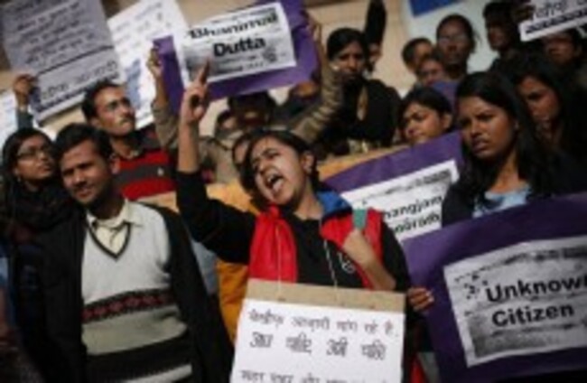 Indians shout slogans during a protest march against gender discrimination and sexual violence in New Delhi in January. Altaf Qadri/AP