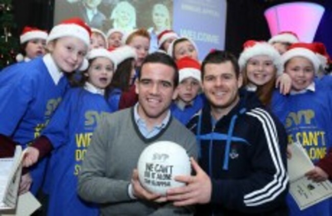 Ger Brennan and Kevin McManamon surrounded by Margaret's National School Choir at the official launch of SVP Annual Appeal. Sam Boal/Photocall Ireland
