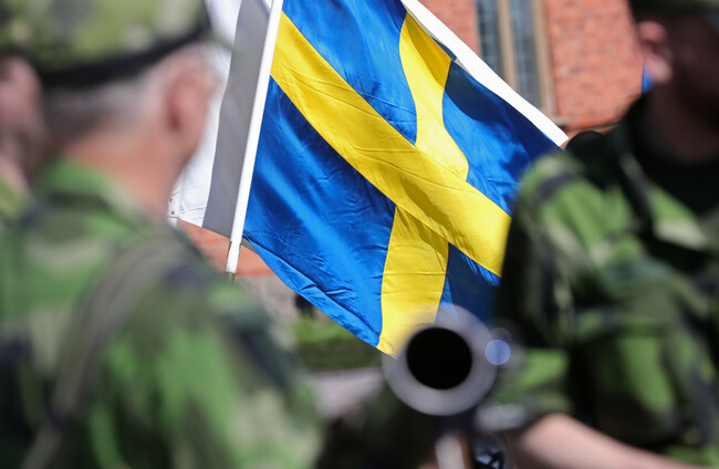 File photo of soldiers in front of the Swedish flag. Shutterstock