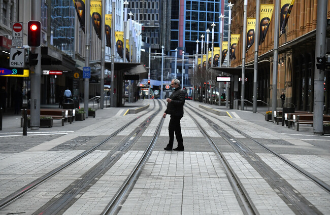 A pedestrian walks along George St in the central business district in Sydney AAP Image/Mick Tsikas via PA Images