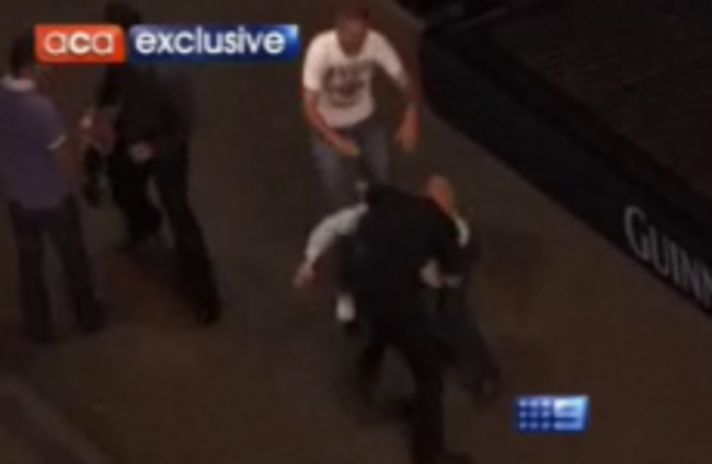 A still image from Channel Nine's news report, which claimed that Irish drinkers were the root of severe anti-social behaviour problems in Sydney. Channel Nine