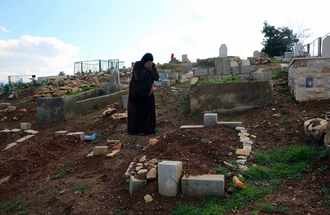 Syrian refugee Saada Khalaf, 45, who fled from the city of Homs, Syria, cries near the grave of her husband Ali Jomaa, in the eastern village of Dalhamyeh, in the Bekaa valley, Lebanon. AP/Press Association Images