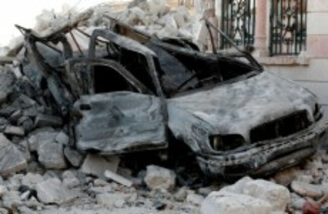 A damaged car in the streets of Azaz, 32km from Aleppo. AP Photo/Turkpix/PA