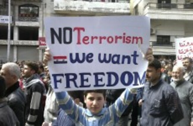 A boy carries a banner during an anti-government demonstration in Syria today /AP/Press Association Images