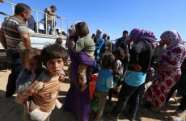 Syrian Kurdish wait for transport as thousands of new Syrian refugees from Kobani arrive at the Turkey-Syria border crossing of Yumurtalik AP/Press Association Images