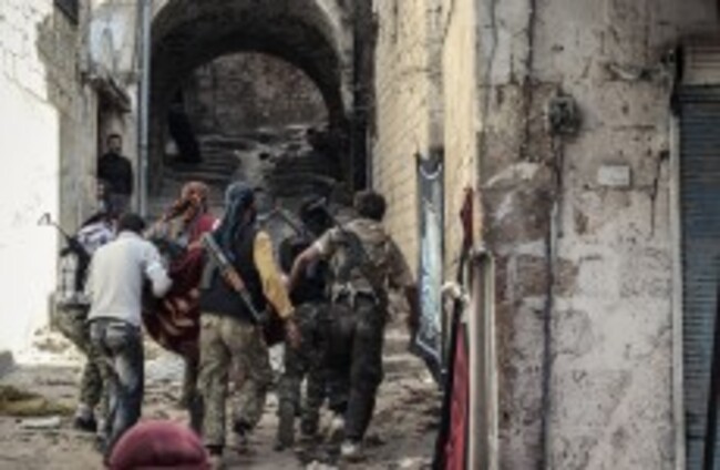 Free Syrian Army fighters carry a wounded colleague through the town of Harem in Syria AP Photo/Mustafa Karali, File
