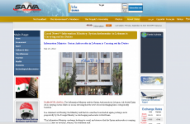 SYRIA’S MINISTRY OF INFORMATION has denied the sacking of the country’s ambassador to Lebanon – and said a previous email, announcing the departure, was a result of hacking.