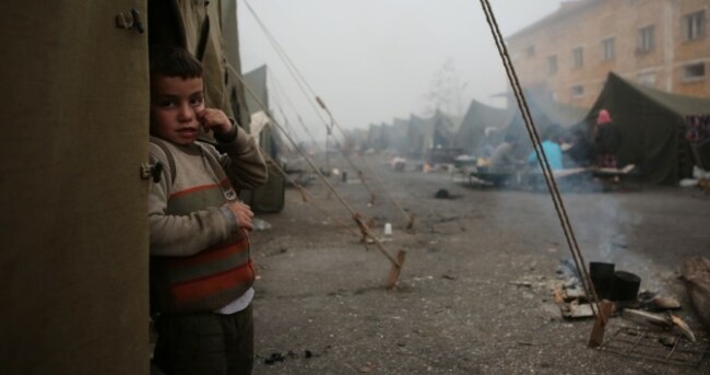5-yrea-old Mohamed Abdo, from Hasaka, Syria, stands in front of unheated tent at the Harmanli camp Valentina Petrova/AP/Press Association Images